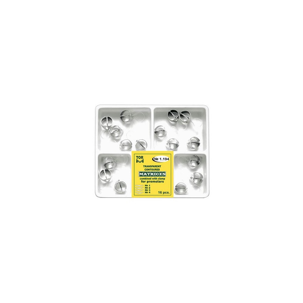 Kit matrici celuloid, transparente cu cleme, conturate pentru premolari, 1.194 - TOR VM: