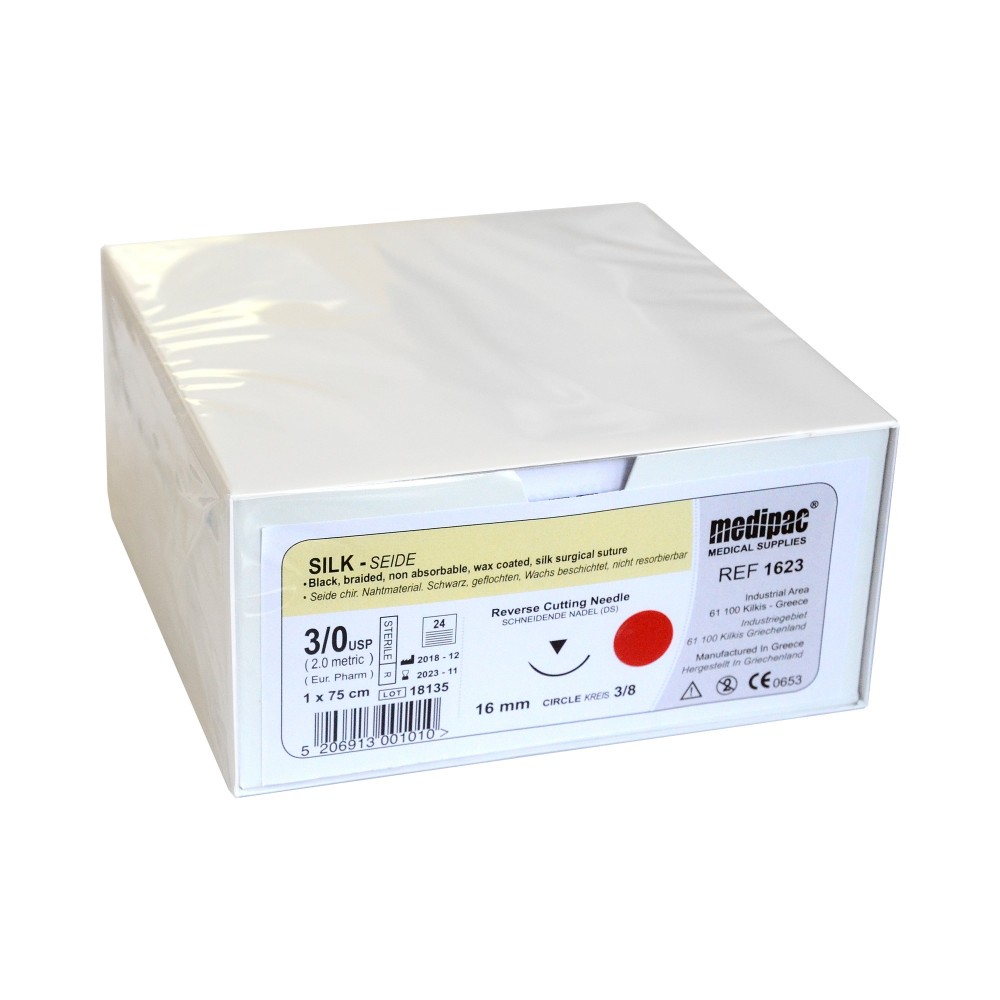 Suturile chirurgicale sterile Silk-Medipac sunt fabricate in conformitate cu cerintele farmacopeii europene pentru fire de sutura sterile impletite din matase.