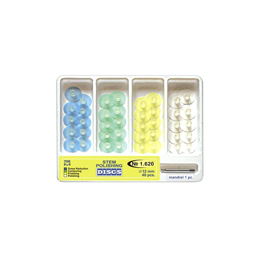 Discuri abrazive 1620 cu mandrina 1111 - TOR VM, 12 mm, polisare, conturare, finisare, lustruire, 10 bucati din fiecare