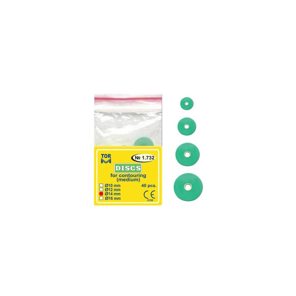 Discuri abrazive verzi 1732, 10, 12, 14, 16 mm - TOR VM, pentru conturare, granulatie medie, 40 bucati, conector metalic.