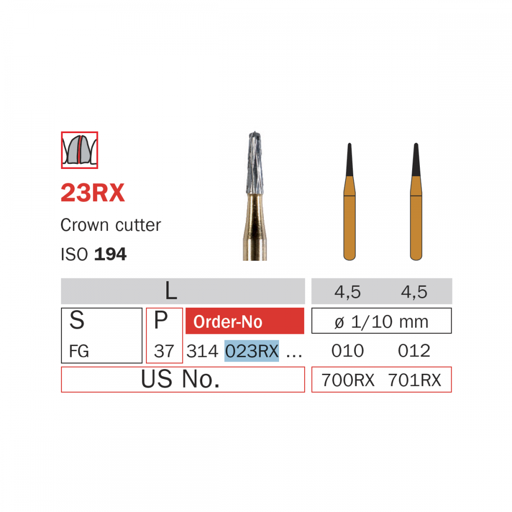 Freze de ablatie (de taiat coroane) 314 023RX Diaswiss Elvetia cu dimensiunea partii active de 012
