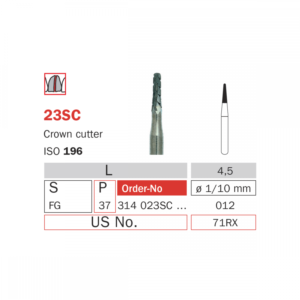 Freze de ablatie (de taiat coroane) 314 023SC Diaswiss Elvetia, cu dimensiunea partii active de 012