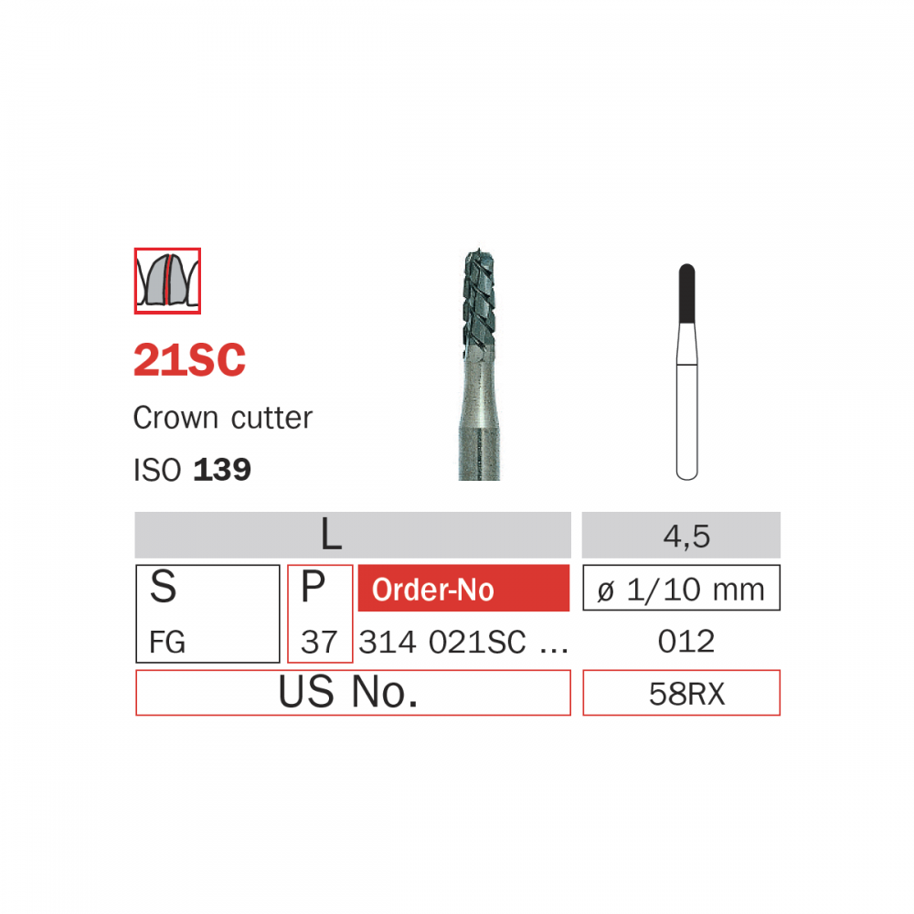 Freze de ablatie (de taiat coroane) 314 021SC Diaswiss Elvetia, cu dimensiunea partii active de 012