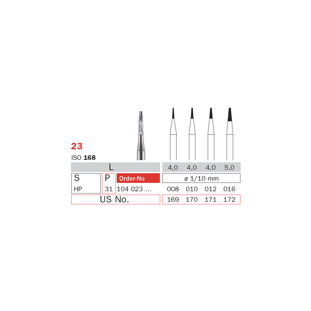 Freze extradure conice pentru piesa dreapta 104 023 (HP) Diaswiss Elvetia, diferite dimensiuni ale partii active