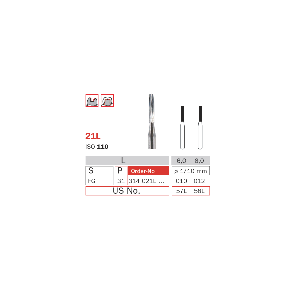 Freze extradure fisura pentru turbina 314 021L (FG) Diaswiss Elvetia, diferite dimensiuni ale partii active.