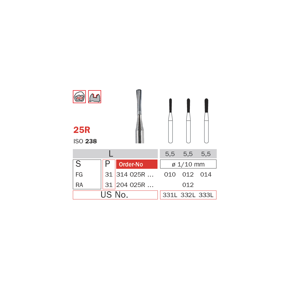 Detalii tehnice: Freze extradure turbina 25R - Diaswiss