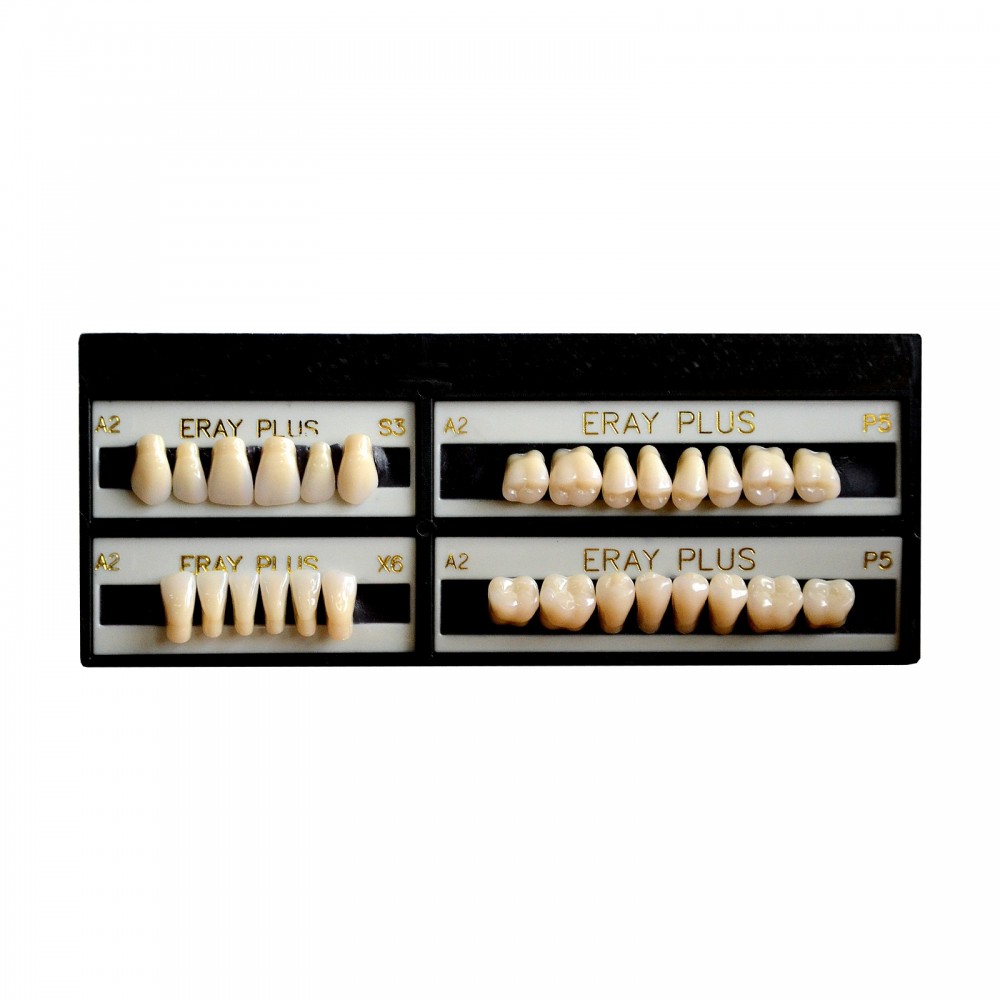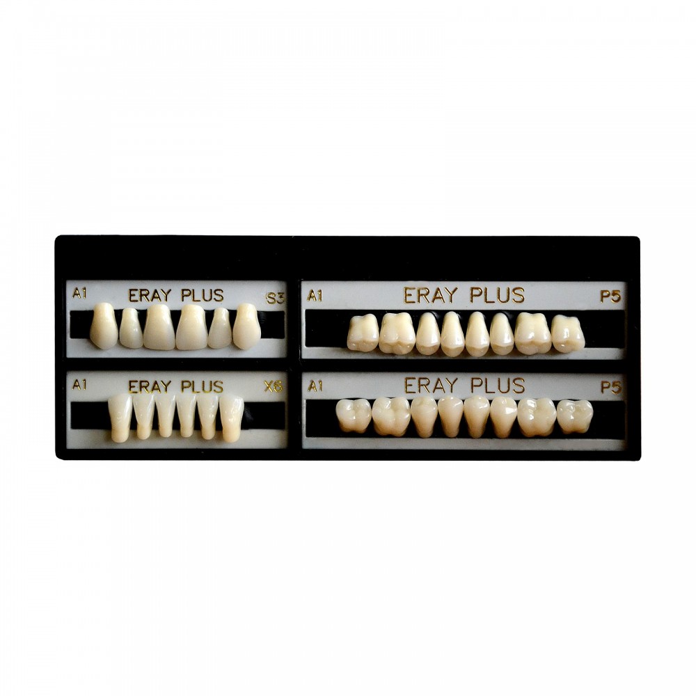 Consultati documentatia cu garnituri de dinti din compozit Eray Plus - Eraylar (PDF) atasat, pentru a vizualiza culorile si formele asociate.