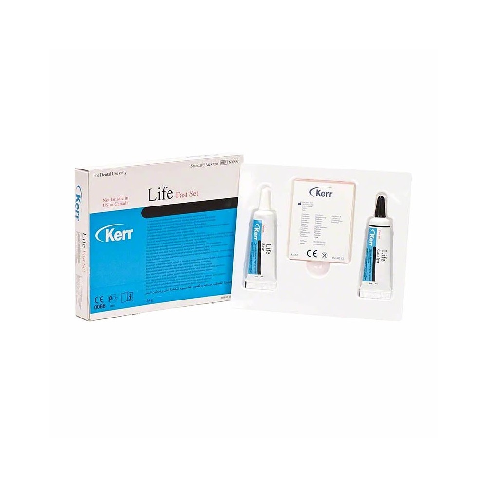 Nota: Compozitia chimica a unor materiale compozite, poate colora temporar materialul in rosu, datorandu-se continutului de rasina pe care il are Kerr Life, care vine in contact cu peroxidul de benzoil din anumite compozite. Aceasta culoare dispare in 2 ore, si nu compromite proprietatile fizice si biocompatibilitatea Life-ului cu compozitul.